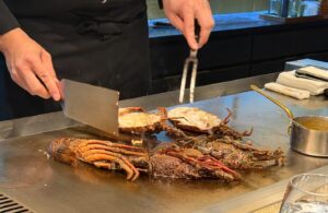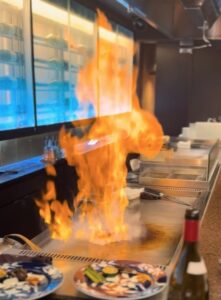 シェフが鉄板で焼き上げてくださるお肉や海鮮は、どれも香りも音もよくて最高✨